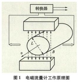 式中:Q為被測(cè)介質(zhì)體積流量,m3/s ; Ue為直流式空調(diào)水流量計(jì)量表用來測(cè)量流體橫越磁場(chǎng)時(shí)所感生的電動(dòng)勢(shì),V; B為磁感應(yīng)強(qiáng)度,T; L為電極間距,即測(cè)量管內(nèi)徑,m;。為液體平均流速,m/s ; k為修正系數(shù)。