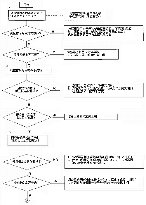 檢查流程圖*3項(xiàng)。管道雜散電流等外界干擾影響主要靠智能高溫水流量計(jì)良好的接地保護(hù),通常要求接地電阻小于1000,不要和具他電機(jī)電器共用接地。有時(shí)候環(huán)境條件較好,智能高溫水流量計(jì)不接地亦能正常工作,但是一旦良好環(huán)境不存在,儀表會(huì)出現(xiàn)故障,屆時(shí)再作檢查會(huì)帶來(lái)堵多麻煩。