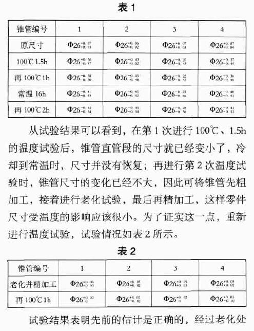 由于錐管老化試驗的溫度為100℃,而產(chǎn)品的使用溫度只有70℃,因此按改進的工藝加工錐管,必定能滿足產(chǎn)品的設計要求。