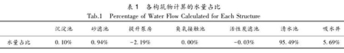 據(jù)統(tǒng)計,各構筑物的水量占比如表 1 所示。