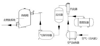 以原料萘為例。萘由原料儲罐經(jīng)液萘泵加壓后進(jìn)入萘蒸發(fā)器,液萘在萘蒸發(fā)器內(nèi)由中壓蒸汽加熱汽化分離,經(jīng)流量調(diào)節(jié)閥、流量計和氣萘切斷閥后進(jìn)入汽化器;空氣經(jīng)風(fēng)機(jī)加壓后,經(jīng)空氣加熱器加熱后進(jìn)入汽化器,氣萘和空氣在汽化器內(nèi)混合均勻后進(jìn)入氧化反應(yīng)器上部,經(jīng)催化床層發(fā)生氧化反應(yīng)生成苯酐和少量的副產(chǎn)物(以順酐、苯甲酸、萘醌、和鄰苯二甲酰亞胺為主);反應(yīng)氣體經(jīng)智能型渦街流量計冷卻后再進(jìn)入切換冷凝器進(jìn)行凝華捕集,少量未被捕集的有機(jī)物和不凝氣體經(jīng)尾氣管路進(jìn)入蓄熱焚燒裝置焚燒處理,焚燒后的尾氣達(dá)標(biāo)排放。