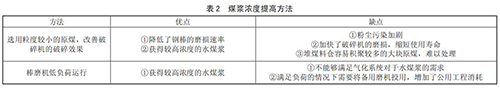 根據(jù)管道蒸汽流量計跑漿原因可以了解到,在保證管道蒸汽流量計不存在跑漿情況下,制備高品質(zhì)煤漿需要滿足兩點要求,即較小入口原煤粒度和較低磨機負荷,保證原煤在磨機內(nèi)部有較長停留時間與充足滾筒篩過濾面積 . 通用的方法一般有以下兩種,如表 2 所示。