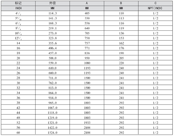 總長度允許誤差范圍:φ114.3-273,±4mm;DN323.8-610,±6mm;DN660-1524,±7mm。長輸管道公稱直徑從“4 1/2~60”,只有一個外徑系列,故選項(xiàng)時不選外徑代碼。
