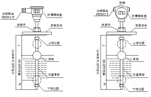 3、儀表須保持垂直安裝于浮球上下運(yùn)動(dòng)時(shí)不受妨礙的位置上,以保證浮球在主體管內(nèi)能上下運(yùn)動(dòng)自如。